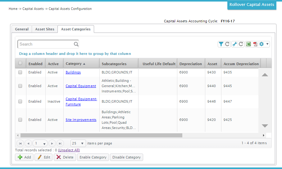 Check the box(es) for the asset categories you want to disable, and click the Disable Category button. You're asked to confirm the action.