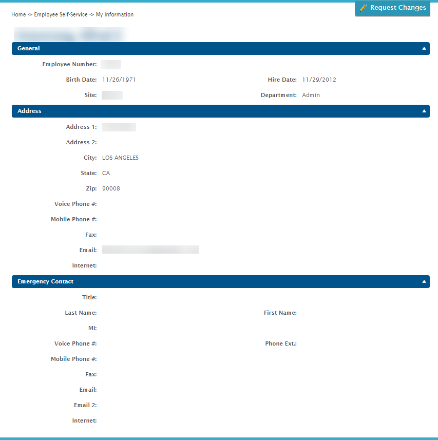 You can also submit a form to request changes to your address or emergency contact information, eliminating the need to email HR or fill out a hard copy of a change request. Change requests are then available to a Human Resources user to view and process.