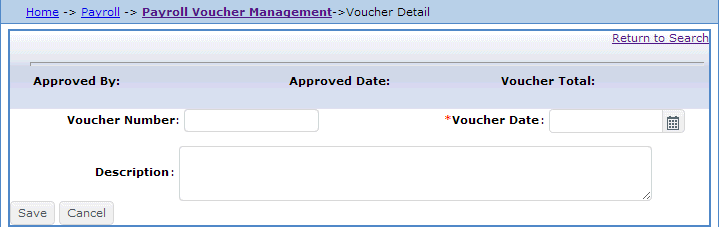 When finished including liabilities, click the Return to Search link in the upper right corner of the window to return to the Payroll Voucher Management window.