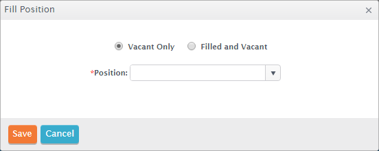 On the Jobs tab, add the controlled position to the employee if it is not already added. Check the box for the position you want to fill, and select Fill Position from the More menu. The Fill Position window opens with the Vacant Only radio button selected.