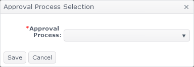 Make a selection from the Approval Process pull-down menu. Processes in the list are set up in Administration > Approval Process.